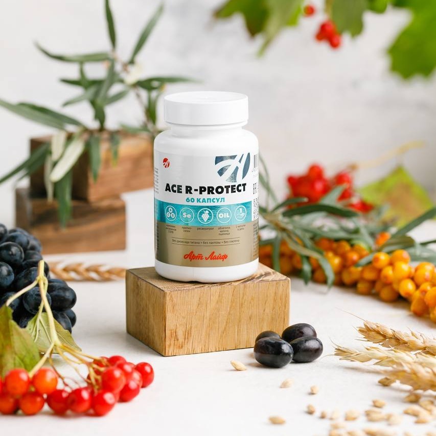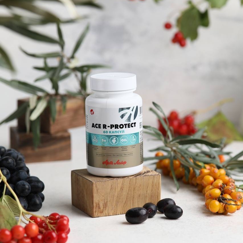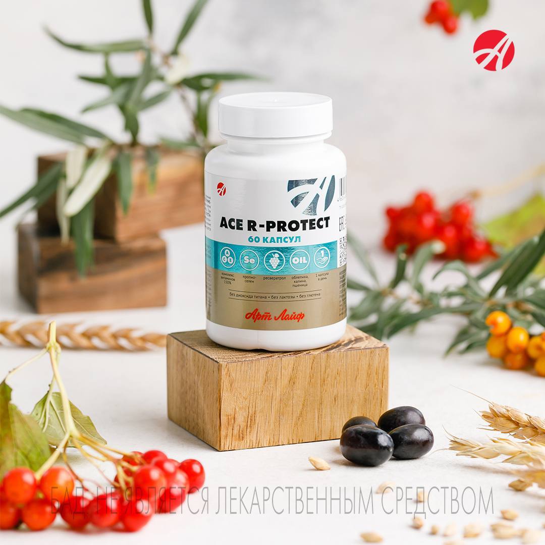 «ACE R-protect» – уникальный комплекс с научно-обоснованным действием, способствующий восстановлению перекисного гомеостаза (баланс концентраций прооксидантных и антиоксидантных компонентов), предупреждающий негативные последствия воздействия свободных радикалов.