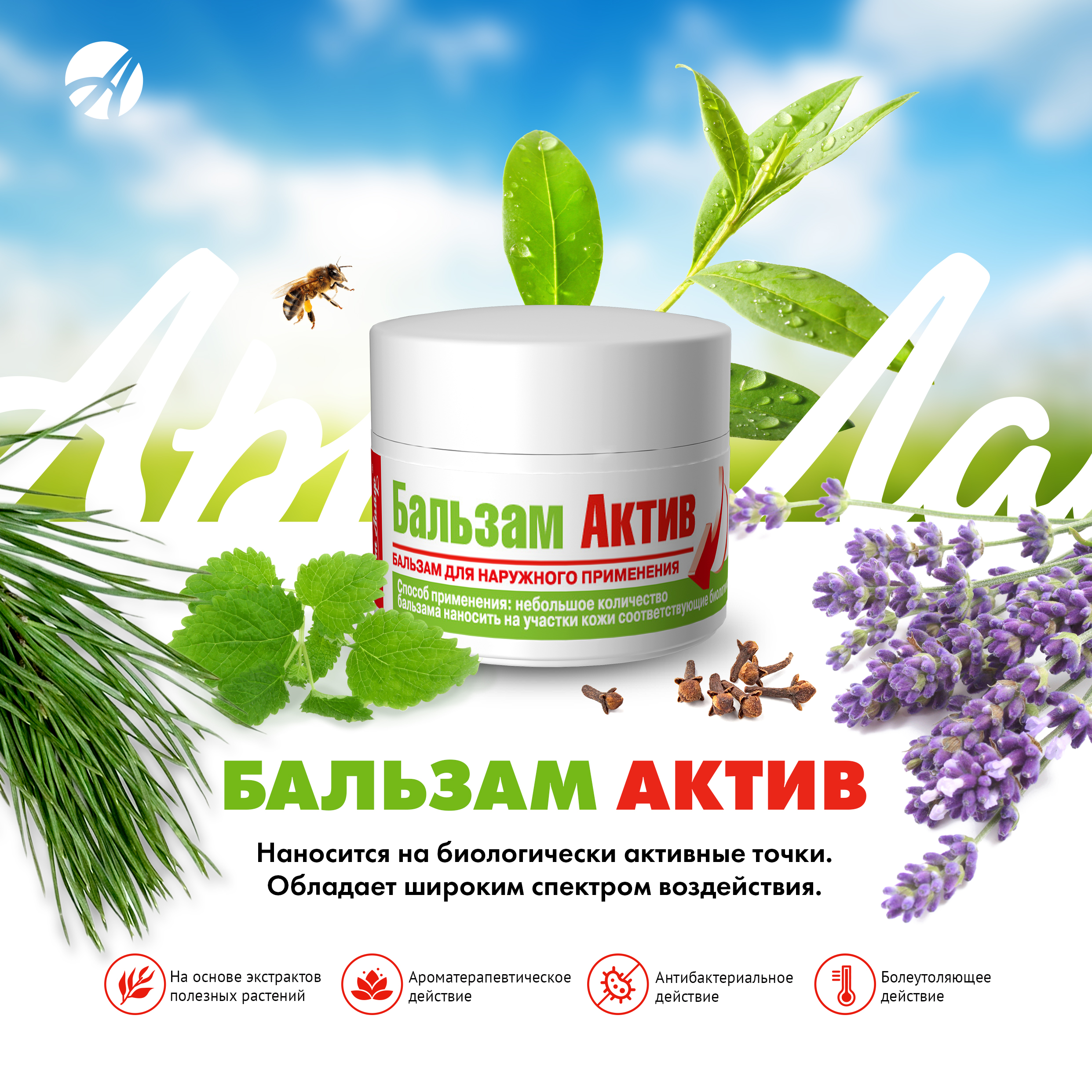 Бальзам «Актив» от «Арт Лайф»обладает местнораздражающим, антисептическим действием, улучшает питание и кровоснабжение тканей. Активные компоненты способствуют выведению мокроты при простудных болезнях, снимают отечность слизистых оболочек носа при ринитах различной этиологии. Крем является вспомогательным средством при лечении различных состояний, сопровождающихся воспалительным процессом, кашлем, насморком и подъемом температуры тела. Благодаря местному анальгетическому действию крем может использоваться для устранения боли, дискомфорта при болезнях суставов костей.