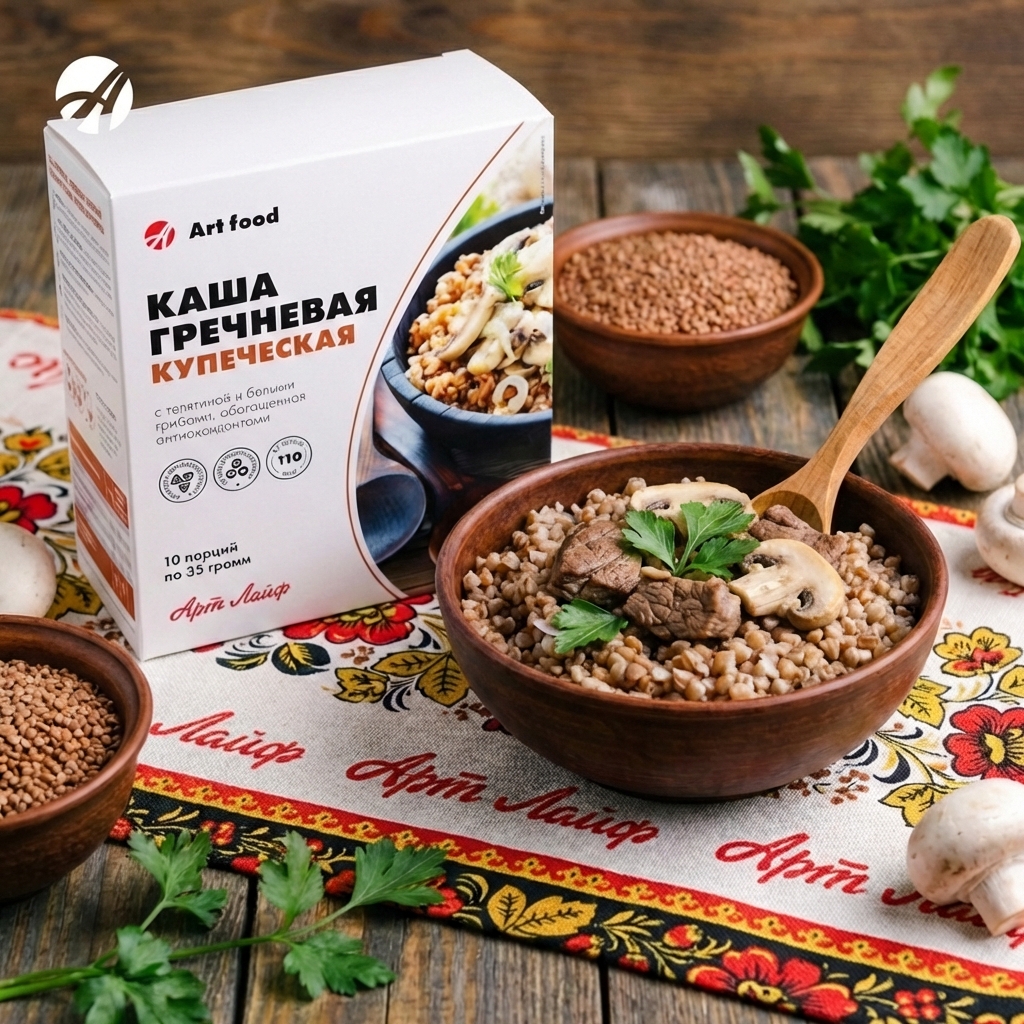 Благодаря добавлению пищевых сушеных ингредиентов — грибов, моркови, лука, чеснока, укропа и мяса — вкус каши становится насыщенней и ароматней. Сочетание мяса с гречкой — оптимальный вариант для профилактики столь сегодня распространенной анемии. А входящий в состав гречки растительный белок способен зарядить организм энергией на длительное время.