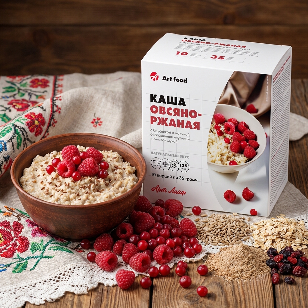 Каша «Овсяно-ржаная с брусникой и малиной» содержит натуральные компоненты, обладает высокой пищевой и биологической ценностью, не содержит сахара, поэтому подходит людям, контролирующим уровень глюкозы в крови. Льняная мука и фибрулин способствуют правильной работе желудочно-кишечного тракта, улучают обменные процессы и предупреждают набор избыточной массы тела.