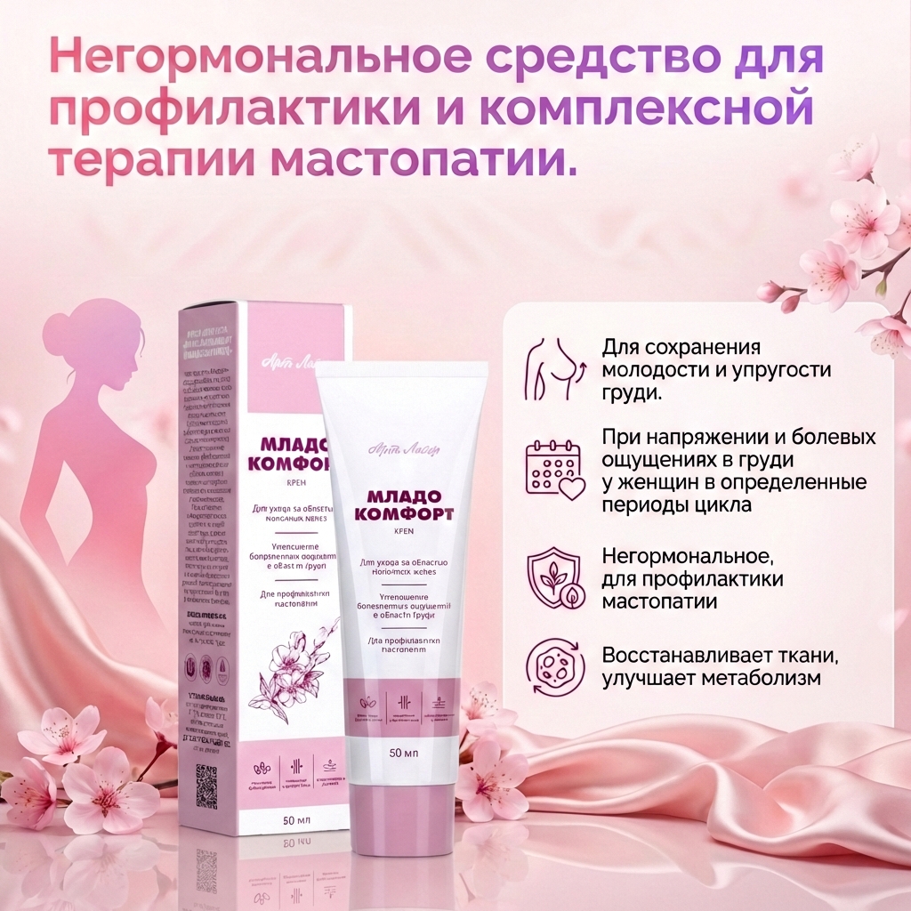Крем «Младокомфорт» — это уникальная эмульсия на основе сбалансированного комплекса жирных спиртов и фосфатных эфиров, обладающий синергичным эмульгирующим и кондиционирующим действием. Такая форма способствует лучшему проникновению активных компонентов в глубокие слои тканей и быстрому впитыванию.