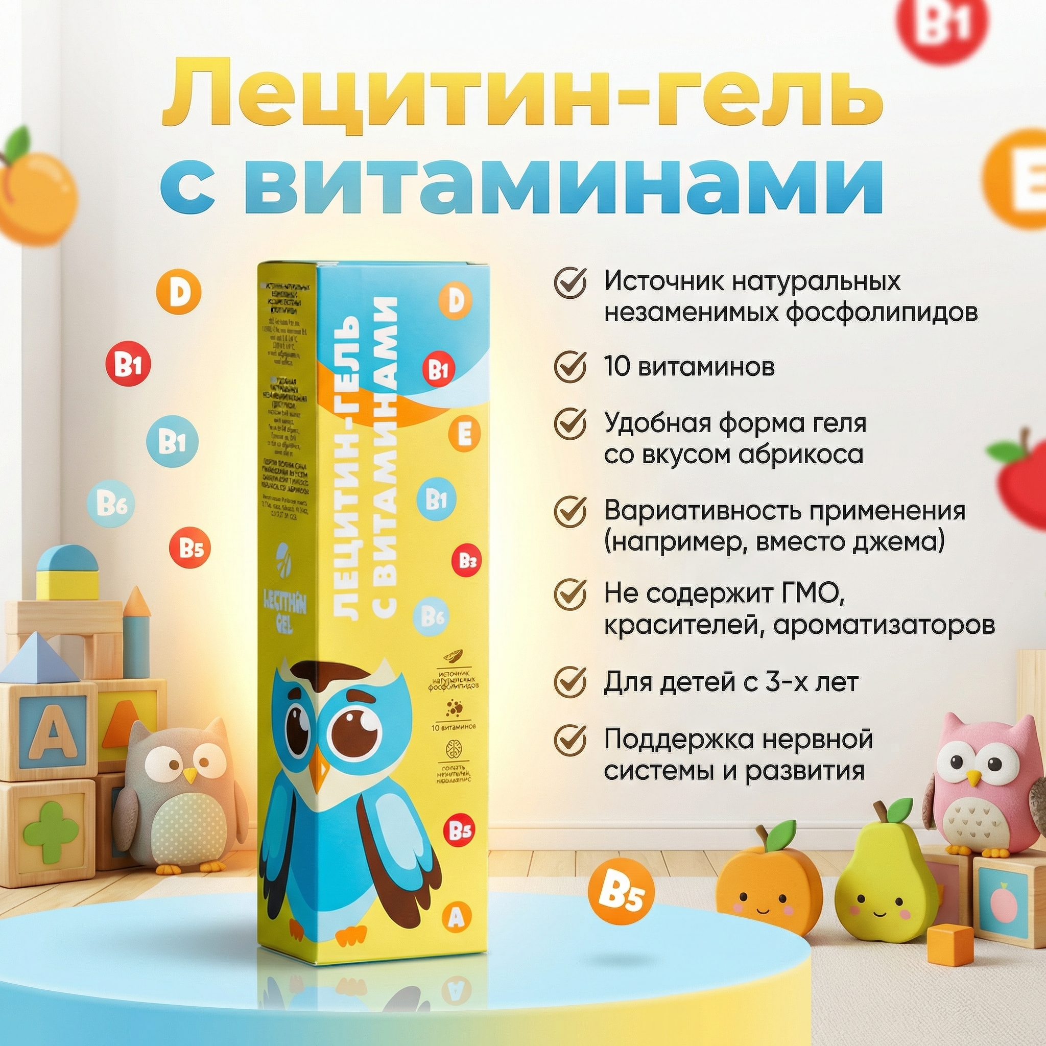 Лецитин-гель, дополненный витаминами от компании Арт Лайф – это комплекс на основе лецитина и витаминов, которая может восполнить недостаток компонентов и удовлетворить потребности активно растущего организма. Она способна улучшить процессы метаболизма, повысить защитную функцию иммунитета, усилить общие защитные механизмы организма, которые смогут бороться с высокими физическими, умственными нагрузками.