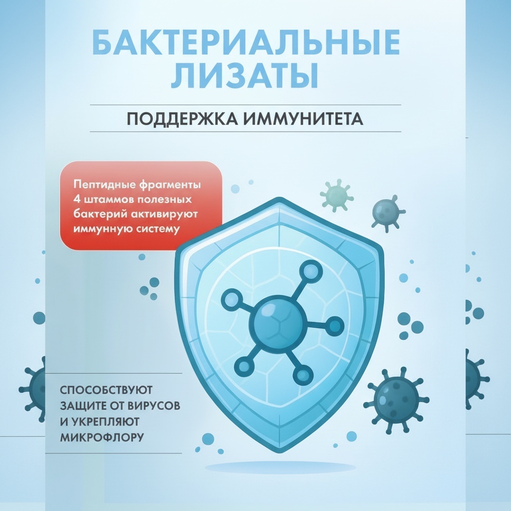 бактериальные лизаты – микрочастицы бактерий, активные компоненты в виде ферментов, бактериоцинов, органических кислот, витаминов. Насыщают организм важными веществами, обеспечивающими нормальное пищеварение, предотвращающими воспалительные процессы ЖКТ, улучшающими состояние органов и систем. Лизаты укрепляют иммунитет – усиливают синтез антител для борьбы с недугом, профилируют развитие инфекционных, вирусных болезней. Оказывают пребиотическое действие – подпитывают естественную биофлору кишечника, регулируют жизнедеятельность бактерий, локальный иммунитет, тормозят развитие патогенной флоры;