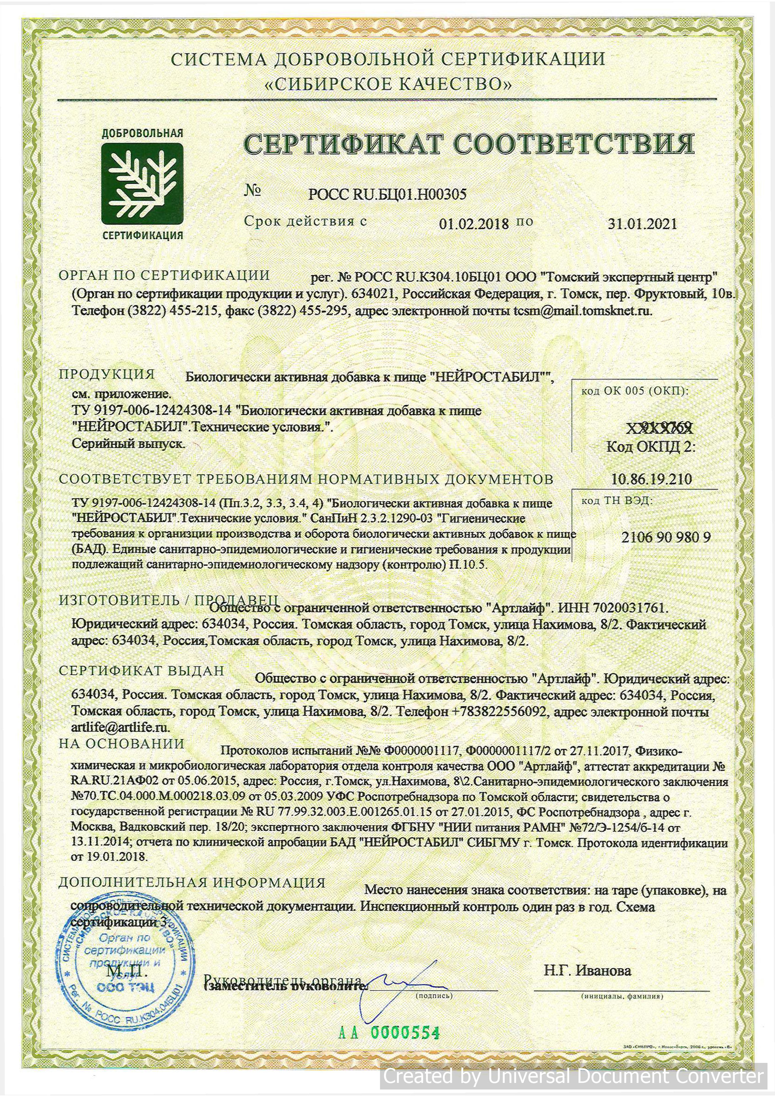 Для индивидуализации дозировки и длительности приема Нейростабил от «Арт Лайф» рекомендуется проконсультироваться со специалистом в области фитотерапии.