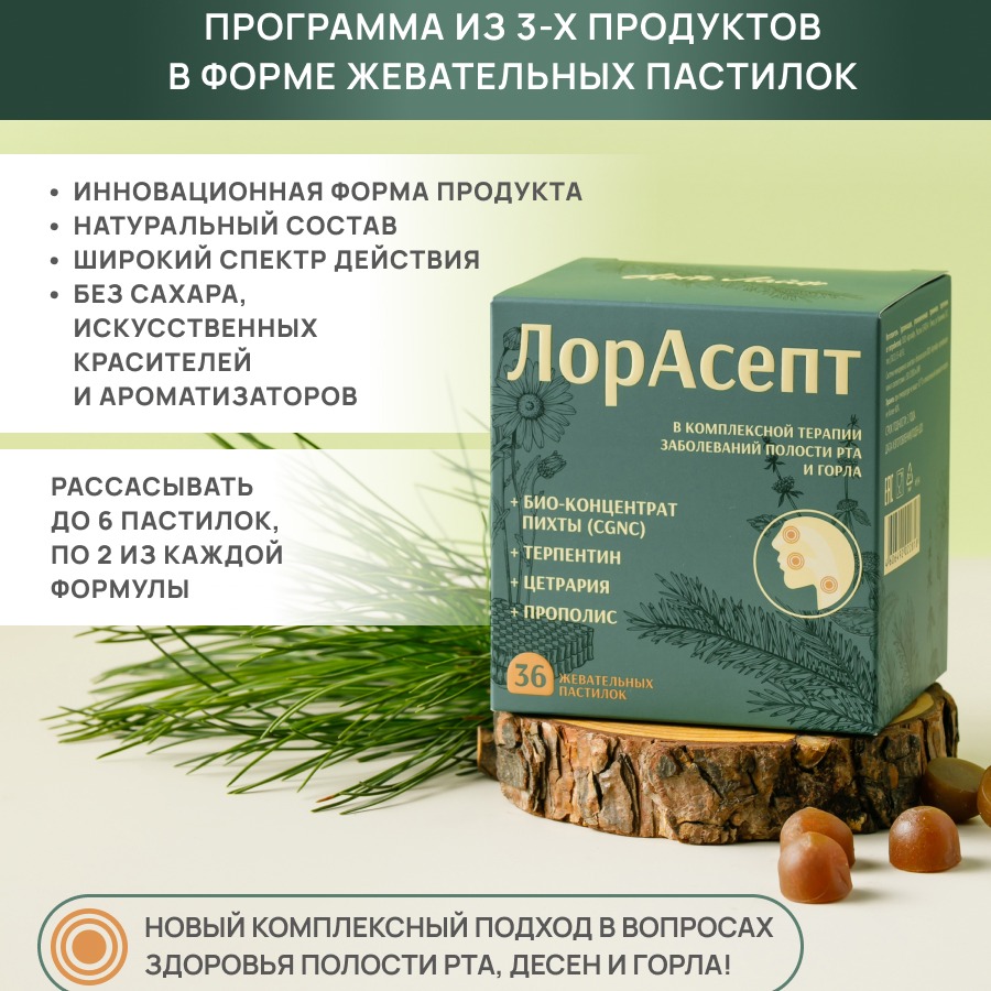 «ЛорАсепт» – программа из 3-х продуктов натурального состава в уникальной форме жевательных пастилок.