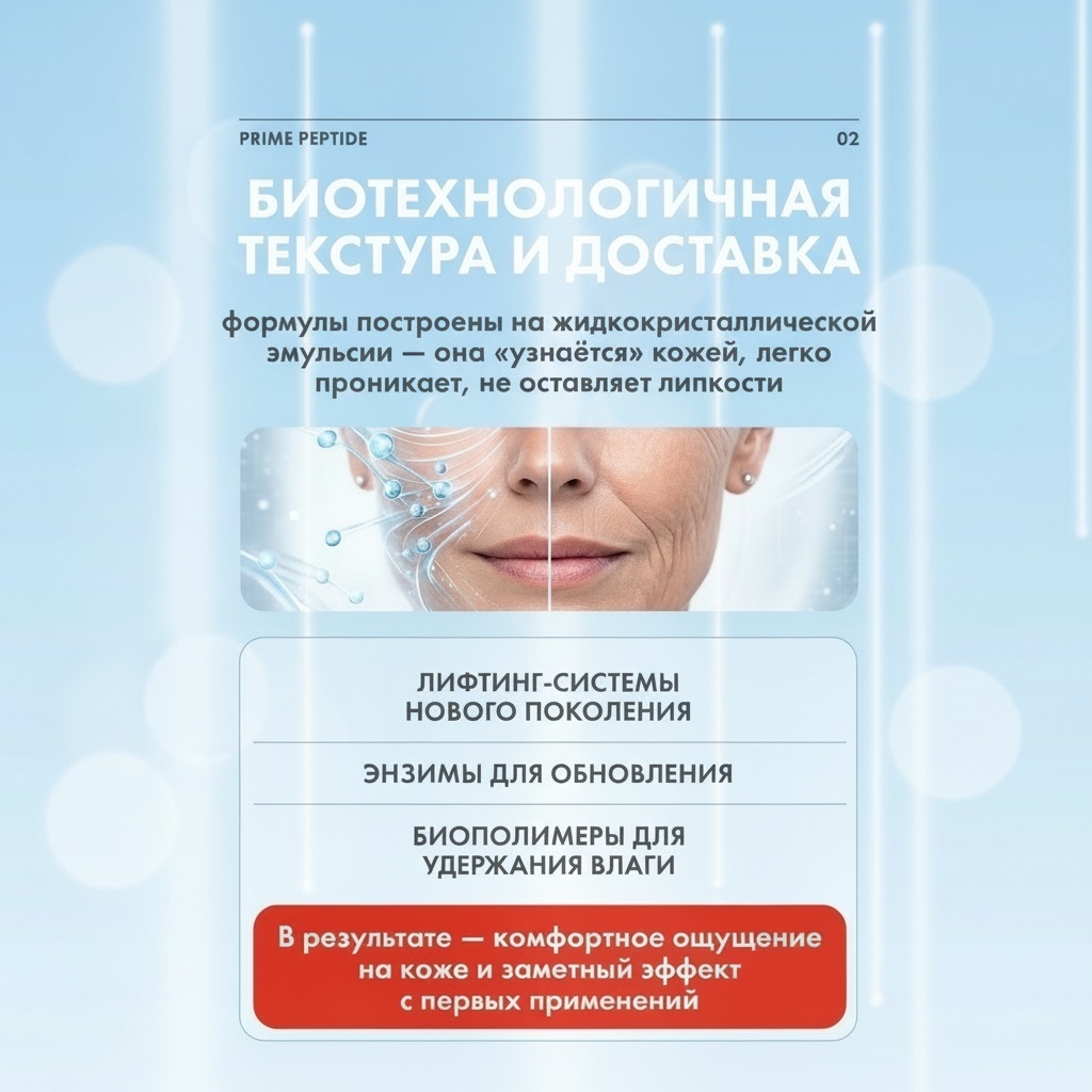 Биосовместимость: пептиды являются естественными для кожи компонентами, что минимизирует риск раздражения.